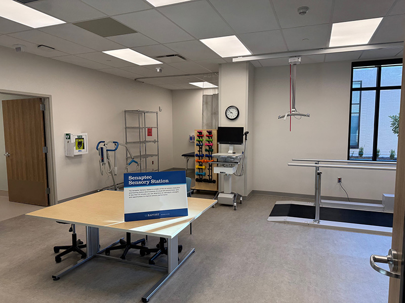 The facility features innovative robotics and rehabilitation technologies, such as a Smart Car, which allows patients to learn and practice car transfer skills, and a Senaptec Sensory Station that evaluates visual and sensorimotor skills. The Rise & Walk full-spectrum gait trainer is also available for patients with neurological and mobility impairments.