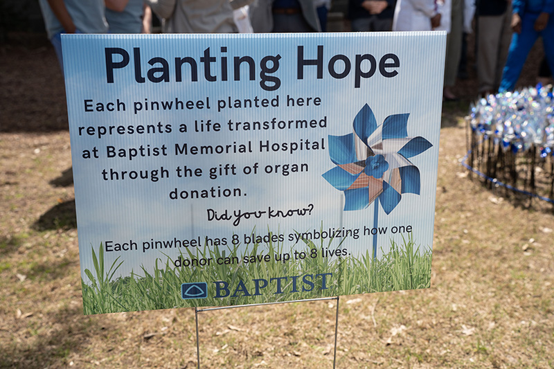 The pinwheels, with eight blades symbolizing the eight lives that can be saved from each organ donor, represented the 93 lung transplants and 492 heart transplants performed at Baptist Heart Institute.