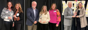 First image: Allison Schuler, chief nursing officer at Baptist Attala (left) and Lisa Jones, nurse manager at Baptist Attala (right). Middle image: Christopher Threadgill, CEO and administrator at Baptist Calhoun (left); Kerry McGregor, RN, quality and risk manager at Baptist Calhoun (middle); and Chrystel Casey, RN, director of nursing at Baptist Calhoun (right). Image on right: Daryl Weaver, CEO and administrator at Baptist Leake (left) and Dr. Jennifer Gholson, director of the Mississippi Center for Rural Health at the Mississippi State Department of Health (right).