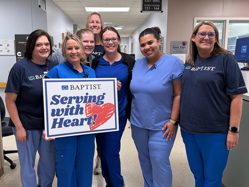 Baptist Carroll County team members wore blue and green and participated in a photo to show support for Mid-South Transplant Foundation and help raise awareness of organ, eye and tissue donation. Throughout the day, team members also helped share the message of donation with patients and visitors, reinforcing the importance of organ donation and its life-saving results. Educational materials were shared at several locations, including The Jackson Clinic-Baptist Outpatient Campus.
